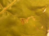 >> Les larves éclosent et pénètrent dans les feuilles qu'elles minent