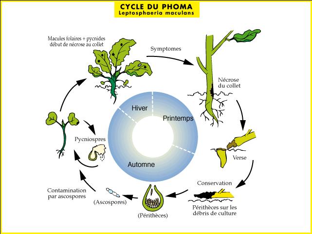 Les variétés sont classées selon leur sensibilité au phoma : S (Sensible), PS (Peu Sensible) et TPS (Très Peu Sensible). Il faut donc éviter au maximum les variétés de colza