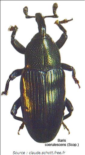 Le baris pond ses oeufs dans le sol, les larves se développent dans le collet et attaquent donc les racines. Cela crée des portes d'ouverture pour les maladies tels que le phoma ou le Verticilium et provoque les "Pieds secs".