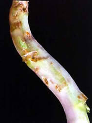 Puis les larves minent ces pétioles pour passer dans les tiges et arriver au bourgeon terminal.