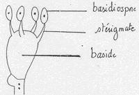 AUTOBASIDIOMYCETES : La baside est non cloisonnée et 4 basidiospores sont émises au sommet.