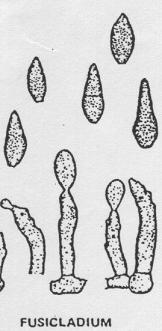 unicellulaires. Conidiophores foncés, courts, droits et simples.