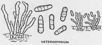 HETEROSPORIUM : Conidies pluricellulaires (cloisons transversales). Conidiophores foncés, à conidies à paroi échinulée.