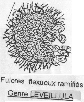 LEVEILLULA : Le cléistothèce renferme plusieurs asques. Les fulcres sont flexueux et ramifiés.