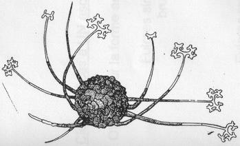 PODOSPHAERA : Le cléistothèce renferme un seul asque. Les fulcres sont divisés à leur extrémité de manière dichotomique.