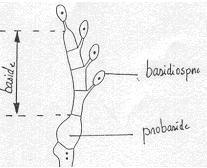PROTOBASIDIOMYCETES : La baside est cloisonnée et 4 basidiospores sont émises latéralement.
